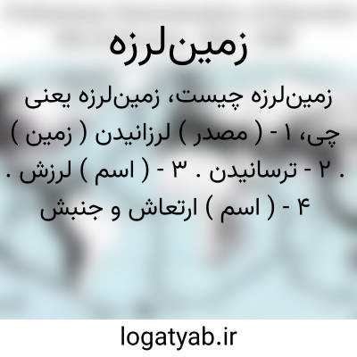 ۱ - ( مصدر ) لرزانیدن ( زمین ). ۲ - ترسانیدن. ۳ - ( اسم ) لرزش. ۴ - ( اسم ) ارتعاش و جنبش و حرکات ناگهانی پوسته جامد کره زمین که در صورت شدت ساختمانها و شهرها را خراب میکند و جمع کثیری را هلاک میکند. حرکات زمین براثر زلزله به دو قسم انجام میشود: یا حرکات افقی است که زمین مانند گهواره حرکت میکند یا عمودی است که به صورت بالا و پایین رفتن نوسانات ظاهر میشوند و معمولا نوع دوم خطرناک تر است زمین لرزه.