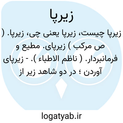 زیرپا. ( ص مرکب ) زیرپای. مطیع و فرمانبردار. ( ناظم الاطباء ).