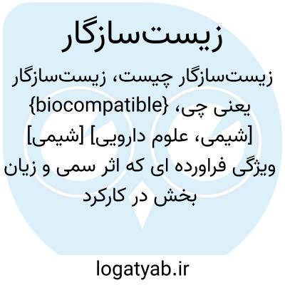 {biocompatible} [شیمی، علوم دارویی] [شیمی] ویژگی فراورده ای که اثر سمی و زیان بخش در کارکرد زیستی نداشته باشد متـ. زی سازگار