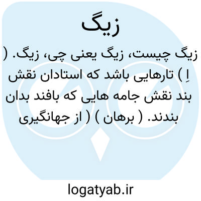 زیگ. ( اِ ) تارهایی باشد که استادان نقش بند نقش جامه هایی که بافند بدان بندند. ( برهان ) ( از جهانگیری ). در فرهنگ گوید ریسمانی که نقش بندان نقش جامه ها بدان بندند و چنانکه آن ریسمان دستوری است جامه بافان راو همچنان آن علم دستوری است برای استخراج تقویم و اوضاع فلکی. ( فرهنگ رشیدی ). زیج. ( ناظم الاطباء ). به این معنی معرب آن زیج... ( حاشیه برهان چ معین ). رجوع به معنی بعد و زیج شود. || رشته بنا که به آن طرح عمارت کنند. ( فرهنگ رشیدی ) ( از انجمن آرا ) ( از آنندراج ). معرب آن زیج است. ( از فرهنگ رشیدی ). || کتابی که منجمان احوال و اوضاع نجوم و افلاک را از جداول آن معلوم کنند و همچنانکه آن قانونی است جامه بافان را در بافتن نقش های جامه، این کتاب نیز دستوری است منجمان را در شناختن احوال و اوضاع فلکی و همچنانکه کیفیات نقوش جامه ها از آن تارها پیدا می شود کمیات و حرکات کواکب از جدولهای این کتاب ظاهر میگردد و معرب آن زیج است. ( برهان ) ( از جهانگیری ). علمی که تقویم از آن استخراج کنند. زیج معرب آن. ( از فرهنگ رشیدی ). علمی که تقویم از آن استخراج نمایند. ( انجمن آرا ) ( آنندراج ). پهلوی «زیک ». ( حاشیه برهان چ معین ):