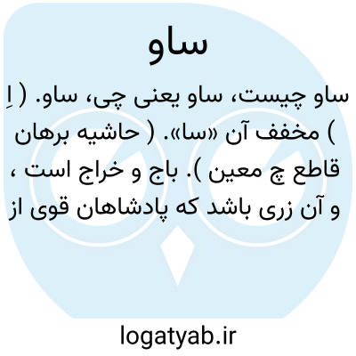 ساو. ( اِ ) مخفف آن «سا». ( حاشیه برهان قاطع چ معین ). باج و خراج است، و آن زری باشد که پادشاهان قوی از پادشاهان ضعیف بگیرند. ( برهان ) ( غیاث ). باج و خراج. ( رشیدی ) ( حاشیه فرهنگ اسدی نخجوانی ) ( صحاح الفرس ): ایشان تدبیر کردند که سوی خاقان رسول فرستند وهدیه و ساو و باج پذیرند. ( ترجمه تاریخ طبری بلعمی ). ملک روم صلح کرد و ساو و باژ بپذیرفت. ( ترجمه طبری بلعمی ). هرقل بقسطنطنیه شد و بسوی انوشیروان کس فرستاد و ساو و باژ قبول کرد. ( ترجمه طبری بلعمی ).