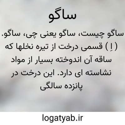 ساگو. ( اِ ) قسمی درخت از تیره نخلها که ساقه آن اندوخته بسیار از مواد نشاسته ای دارد. این درخت در پانزده سالگی فقط یک بار گل میدهد و خشک میشود ولی اگر قبل از گل دادن آن را قطع کنند میتوان از هر درخت از 300 تا 400 کیلوگرم نشاسته بدست آورد. ( گیاه شناسی گل گلاب ص 292 ). || نوعی نشاسته که از بعضی درختان تیره نخیلات گیرند. سابودانه. ( ناظم الاطباء ).