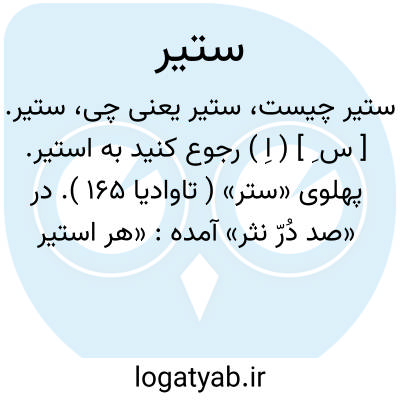 ستیر. [ س ِ ] ( اِ ) رجوع کنید به استیر. پهلوی «ستر» ( تاوادیا 165 ). در «صد دُرّ نثر» آمده: «هر استیر چهار درم بود چنانکه سیصد دُرّ استیر هزار و دویست درم بود». ( حاشیه برهان قاطع چ معین ). بمعنی سیر است که یک حصه از چهل حصه من باشد و آن به وزن تبریز پانزده مثقال است چه یک من تبریز شش صد مثقال و هر مثقالی شش دانگ، و بعضی گویند ستیر شش درهم و نیم باشد. ( برهان ). شش درم سنگ و نیم. ( اوبهی ) ( شرفنامه ). وزنی باشد که آن را سیر گویند. ( آنندراج ). استیر که بعربی استار گویند یعنی شش درم و نیم که چهل یک ِ من بود. استار و آن شش درم سنگ و نیم بود. ( فرهنگ اسدی ) ( رشیدی ):