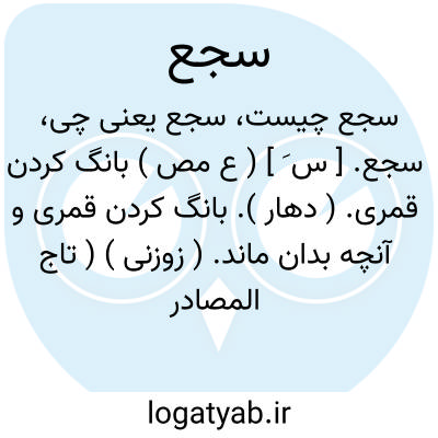 ۱ - ( مصدر ) سخن مقفی گفتن. ۲ - ( مصدر ) بانگ کردن کبوتر. ۳ - نالیدن شتر. ۴ - ( اسم ) موزون و مقفی بودن سخن. ۵ - ( اسم ) آواز کبوتر. ۶ - کلمات هم آهنگ که در آخر جمله های به عبارت میاوردند. سجع در نثر حکم قافیه دارد در نظم و آن بر سه قسم است: یا سجع متوازن. چنانست که کلمات فقط در یک وزن باشند مانند: بحری است مواج و شخصی نقاد. در این مثال بحر با شخص و مواج با منقاد سجع متوازن است. یا سجع متوازی. چنانست که در آخر دو جمله کلماتی آرند که در وزن و عدد و حروف روی ( آخرین حرف اصلی کلمه ) یکی باشد مانند: باران رحمت بیحسابش همه را رسیده و خوان نعمت بیدریغش همه جا کشیده. یا سجع مطرف. چنانست که در آخر دو جمله کلماتی آورند که فقط در حرف روی یکی باشند مانند: هر نفسی که فرو میرود ممد حیات است و چون باز میاید مفرح ذات.