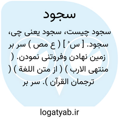 (سُ ) [ ع. ] ۱ - (مص ل. ) سجده کردن. ۲ - (اِمص. )پرستش، پیشانی بر زمین گذاشتن برای عبادت یا اظهار فروتنی.