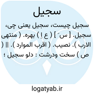 سجیل. [ س َ ] ( ع اِ ) بهره. ( منتهی الارب ). نصیب. ( اقرب الموارد ). || ( ص ) سخت ودرشت: دلو سجیل؛ دلو بزرگ. ضرع سجیل؛ پستان دراز فروهشته فراخ پوست. ( منتهی الارب ) ( از اقرب الموارد ).