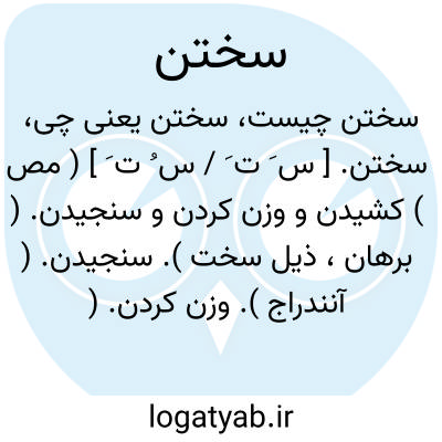 سختن. [ س َ ت َ / س ُ ت َ ] ( مص ) کشیدن و وزن کردن و سنجیدن. ( برهان، ذیل سخت ). سنجیدن. ( آنندراج ). وزن کردن. ( شرفنامه ):