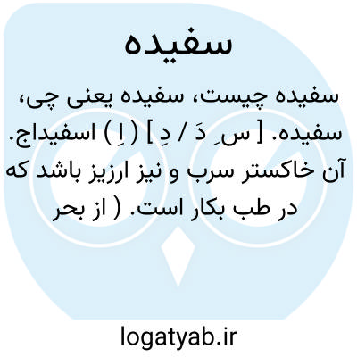 سفیده. [ س ِ دَ / دِ ] ( اِ ) اسفیداج. آن خاکستر سرب و نیز ارزیز باشد که در طب بکار است. ( از بحر الجواهر ). || سپیده تخم. مقابل زرده تخم مرغ. || روشنایی صبح. فجر. سپیده صبح: