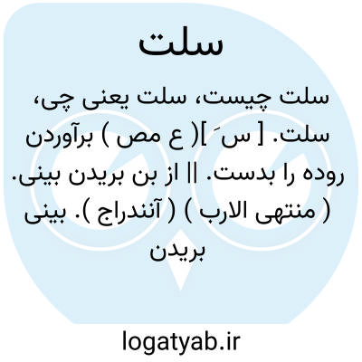 سلت. [ س َ ]( ع مص ) برآوردن روده را بدست. || از بن بریدن بینی. ( منتهی الارب ) ( آنندراج ). بینی بریدن بشمشیر. ( تاج المصادر بیهقی ) ( از اقرب الموارد ). || ستردن موی را. ( منتهی الارب ) ( آنندراج ). || دور کردن زن دست بند حنا را از دست. ( منتهی الارب ) ( اقرب الموارد ). || بریدن چیزی را. || پاک کردن کاسه را با انگشت. ( منتهی الارب )( آنندراج ). کاسه لیسیدن. ( المصادر زوزنی ). پاک کردن کاسه. ( تاج المصادر بیهقی ). || زدن کسی را. || ریخ زدن. ( منتهی الارب ) ( آنندراج ).
