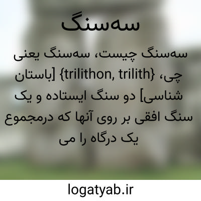{trilithon, trilith} [باستان شناسی] دو سنگ ایستاده و یک سنگ افقی بر روی آنها که درمجموع یک درگاه را می ساختند