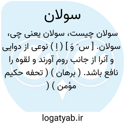 سولان. [ س َ وَ ] ( اِ ) نوعی از دوایی و آنرا از جانب روم آورند و لقوه را نافع باشد. ( برهان ) ( تحفه حکیم مؤمن ) ( اختیارات بدیعی ). لکلرک گوید: نمیدانم چه ماده ای است. ( از حاشیه ٔبرهان قاطع چ معین ). نام دارویی است که آنرا عصیر نرپرون گویند. ( ناظم الاطباء ). || بام خانه.( برهان ) ( ناظم الاطباء ). || مطلق بلندیها.( برهان ). برآمدگی. بلندی. ارتفاع. ( ناظم الاطباء ).