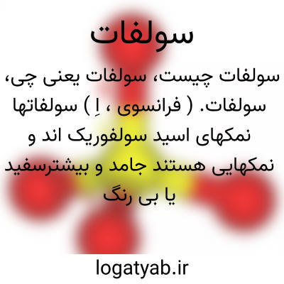 سولفات. ( فرانسوی، اِ ) سولفاتها نمکهای اسید سولفوریک اند و نمکهایی هستند جامد و بیشترسفید یا بی رنگ و بعضی مانند سولفات مس رنگین هستند.بطور کلی رنگ آنها مربوط بفلزشان است. همه سولفاتهادر آب محلول شوند و فقط سولفات سرب و باریم غیر محلولند. سولفاتها بسیار باثبات اند و بر اثر گرمای زیادبسختی تجزیه گردند و در طبیعت بفراوانی یافت شوند. سولفات انواع متعدد دارد: سولفات سود [ سولفات دوسود]، سولفات سدیم، سولفات سرب، سولفات فرو، سولفات فریک، سولفات کلسیم، سولفات مس. ( فرهنگ فارسی معین ).