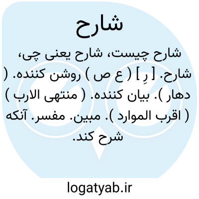 ( اسم ) آنکه کتابی یا مطلبی را شرح کند و مشکلات آنرا تفسیر نماید بیان کننده. جمع: شراح. یا قول شارح. آن است که معنی اسم را در لغت یا ذات مسمی را در حقیقت بیان کند.