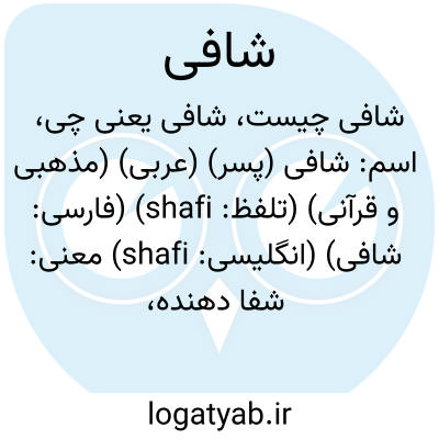 اسم: شافی (پسر) (عربی) (مذهبی و قرآنی) (تلفظ: shafi) (فارسی: شافی) (انگلیسی: shafi)