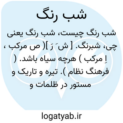 شبرنگ. [ ش َ رَ ]( ص مرکب، اِ مرکب ) هرچه سیاه باشد. ( فرهنگ نظام ). تیره و تاریک و مستور در ظلمات و سیاه و تیره گون. ( ناظم الاطباء ). همچون شب در سیاهی و تیرگی: