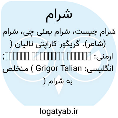 شرام (شاعر). گریگور کاراپتی تالیان ( ارمنی: Գրիգոր Կարապետի Թալյան; انگلیسی: Grigor Talian ) متخلص به شرام ( ارمنی: Շերամ; انگلیسی: Sheram; زاده ۲۰ مارس ۱۸۵۷ - درگذشته ۷ مارس ۱۹۳۸ ) شاعر، آوازه خوان مردمی و آهنگساز اهل ارمنستان است. وی را به عنوان بنیانگذار «هنر نوین گوسان» ( آهنگسازی مردمی ارمنی ) می شناسند.