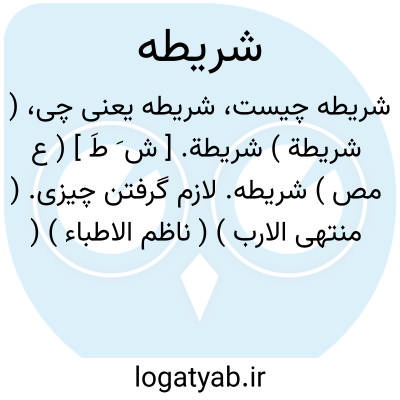 ( شریطة ) شریطة. [ ش َ طَ ] ( ع مص ) شریطه. لازم گرفتن چیزی. ( منتهی الارب ) ( ناظم الاطباء ) ( آنندراج ). شرط در لازم گرفتن چیزی و اجرای آن در بیع و مانند آن. ( از اقرب الموارد ). || ( اِ ) شرطنامه خرید و فروخت. ( مهذب الاسماء ). || شرط و پیمان. ج، شَرائط. ( منتهی الارب ) ( از آنندراج ). || ( ص ) شتر شکافته گوش. ( منتهی الارب ) ( ناظم الاطباء ) ( از آنندراج ) ( از اقرب الموارد ). || ( اِ ) بندی که جامه بر آن افکنند. ( مهذب الاسماء ) ( یادداشت مؤلف ). رژه. ( یادداشت مؤلف ). || گوسپندی که در گلوی آن نشان اندک و خفیف کنند، مانند نشان حجامت و رگ گردن آن را نبرند و خون نریزند... و این رسم جاهلیت است و فی الحدیث: لاتَأکلوا لشریطة. ( از اقرب الموارد ) ( از منتهی الارب ) ( از آنندراج ) ( ناظم الاطباء ). || مشروطة. ( اقرب الموارد ). رجوع به مشروطة شود.