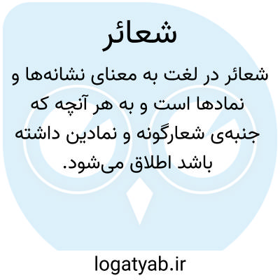جمع: شعاره شعیره ۱ - علامتها نشانه ها. ۲ - هر یک از مناسک حج. ۳ - آداب و رسوم مذهبی یا ملی. یا شعایر اسلام. هر آن چیز که اسلام بدان استوار است.