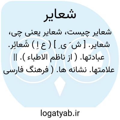 جمع: شعاره شعیره ۱ - علامتها نشانه ها. ۲ - هر یک از مناسک حج. ۳ - آداب و رسوم مذهبی یا ملی. یا شعایر اسلام. هر آن چیز که اسلام بدان استوار است.