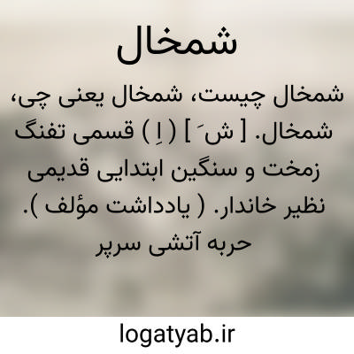 شمخال. [ ش َ ] ( اِ ) قسمی تفنگ زمخت و سنگین ابتدایی قدیمی نظیر خاندار. ( یادداشت مؤلف ). حربه آتشی سرپر که سربازان قدیم به کار می بردند. ( فرهنگ فارسی معین ).