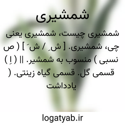 شمشیری. [ ش ِ / ش َ ] ( ص نسبی ) منسوب به شمشیر. || ( اِ ) قسمی گل. قسمی گیاه زینتی. ( یادداشت مؤلف ).