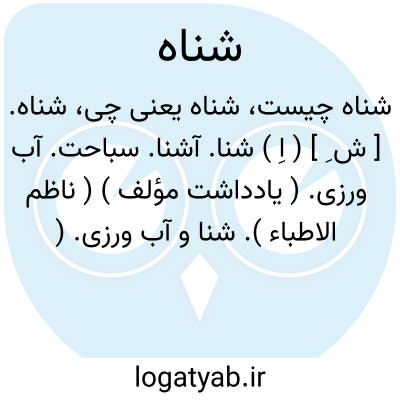 شناه. [ ش ِ ] ( اِ ) شنا. آشنا. سباحت. آب ورزی. ( یادداشت مؤلف ) ( ناظم الاطباء ). شنا و آب ورزی. ( برهان ). شناوری. ( غیاث اللغات ). شنا کردن. ( از اوبهی ). شناگری. ( انجمن آرا ). شناوری و دست و پا زدن وبا لفظ کردن مستعمل است. ( از آنندراج ):