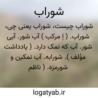 شوراب. ( اِخ ) دهی است از دهستان طاغنکوه بخش فدیشه شهرستان نیشابور. آب از قنات. محصول آن غلات. سکنه آن 574 تن. ( از فرهنگ جغرافیایی ایران ج 9 ).