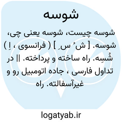 شوسه. [ ش ُ س ِ ] ( فرانسوی، اِ ) شُسِه. راه ساخته و پرداخته. || در تداول فارسی، جاده اتومبیل رو و غیرآسفالته. راه ساخته شده و شن و سنگ ریزه ریخته شده. ( از ناظم الاطباء ).