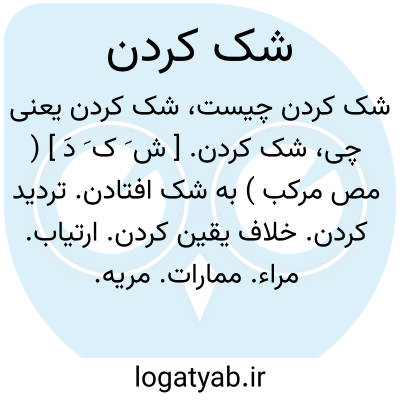 شک کردن. [ ش َ ک َ دَ ] ( مص مرکب ) به شک افتادن. تردید کردن. خلاف یقین کردن. ارتیاب. مراء. ممارات. مریه. امتراء. بیقره. ( از یادداشت مؤلف ):
