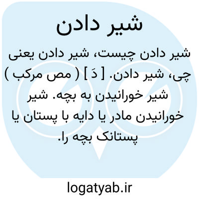 شیر دادن. [ دَ ] ( مص مرکب ) شیر خورانیدن به بچه. شیر خورانیدن مادر یا دایه با پستان یا پستانک بچه را. ارضاع. رضاع. ( یادداشت مؤلف ). املاج. لبان. ( منتهی الارب ). تمهیق. ( دهار )( تاج المصادر بیهقی ). ارضاع: ملح؛ شیر دادن کسی را.( تاج المصادر بیهقی ). ملاح؛ شیر دادن کودک را با کودک دیگر. ( منتهی الارب ). ارغاث. ( المصادر زوزنی ) ( یادداشت مؤلف ) ( تاج المصادر بیهقی ). املاج؛ شیر دادن بچه. ( المصادر زوزنی ) ( تاج المصادر بیهقی ):