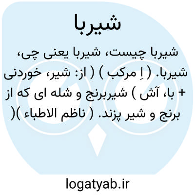 شیربا. ( اِ مرکب ) ( از: شیر، خوردنی + با، آش ) شیربرنج و شله ای که از برنج و شیر پزند. ( ناظم الاطباء )( از برهان ) ( از آنندراج ). غذایی است که از شیر و برنج ترتیب دهند. آش شیر. شیربرنج. شیروا: