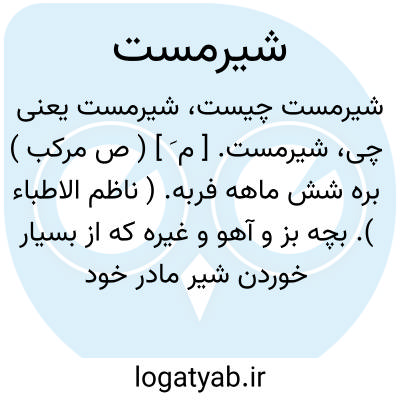 شیرمست. [ م َ ] ( ص مرکب ) بره شش ماهه فربه. ( ناظم الاطباء ). بچه بز و آهو و غیره که از بسیار خوردن شیر مادر خود مست گردد. ( غیاث ). سخت فربه از بسیار خوردن شیر مادر ( گوسفندو غیره ). سیر شیر. بره یا گوساله که مادر وی شیر بسیار داشته و بره یا گوساله او نیک فربه شده باشد. ( یادداشت مؤلف ). بچه بز و آهو و غیره که از بسیار خوردن شیر مادر خود مست گردد، و اطلاق آن بر غیر بره من حیث الاشتباه است نه حیث الاستعمال. ( آنندراج ): و همه سال بره شیرمست یافته شود و ماهی تازه به همه اوقات [ در سیستان ]. ( تاریخ سیستان ص 12 ).