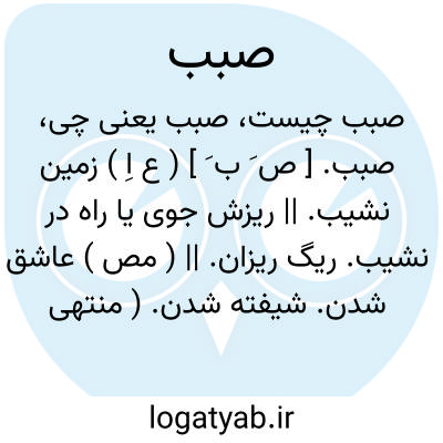 صبب. [ ص َ ب َ ] ( ع اِ ) زمین نشیب. || ریزش جوی یا راه در نشیب. ریگ ریزان. || ( مص ) عاشق شدن. شیفته شدن. ( منتهی الارب ).