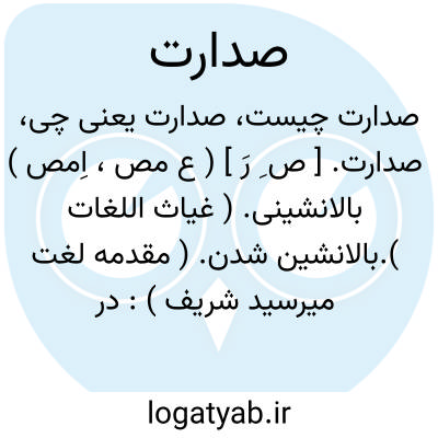 صدارت. [ ص ِ رَ ] ( ع مص، اِمص ) بالانشینی. ( غیاث اللغات ).بالانشین شدن. ( مقدمه لغت میرسید شریف ):