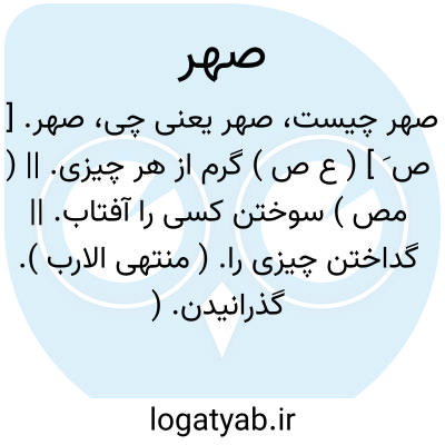 صهر. [ ص َ ] ( ع ص ) گرم از هر چیزی. || ( مص ) سوختن کسی را آفتاب. || گداختن چیزی را. ( منتهی الارب ). گذرانیدن. ( ترجمان علامه جرجانی ). || چرب کردن و تر نمودن سر را به پیه گداخته و مانند آن. ( منتهی الارب ).
