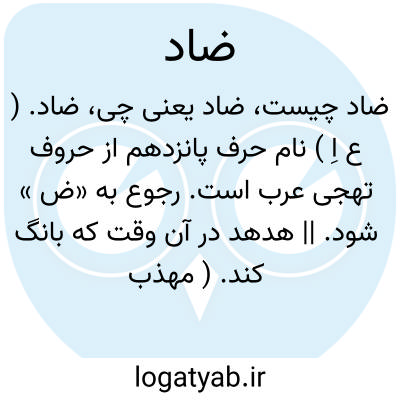 ضاد. ( ع اِ ) نام حرف پانزدهم از حروف تهجی عرب است. رجوع به «ض » شود. || هدهد در آن وقت که بانگ کند. ( مهذب الاسماء ). هدهد وقتی که سر خود را بالا کند و فریاد زند. هدهد. ( دهار ).