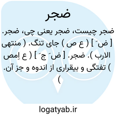ضجر. [ ض َ ج ِ ] ( ع ص ) بیقرار. ملول. تفته. ( منتهی الارب ). خشمگین. ضجور. ( مهذب الاسماء ). طپان. جَمَل ٌ ضجر؛ شتر طپان بابانگ. ( منتهی الارب ). دلتنگ. ( منتخب اللغات ) ( زمخشری ): امیر ضجر شد اسب خواست و از پیل بر اسب سلاح پوشیده برنشست. ( تاریخ بیهقی ص 580 ). سخت ضجر شد از این سخن چنانکه اندک کراهیت در وی بدیدم. ( تاریخ بیهقی ص 687 ). روا نیست ما رابا ایشان سخن جز بشمشیر گفتن و ناصواب بود لشکر فرستادن و در این ابواب بونصر گواه من است که با وی گفته بودم اما چون خداوند ضجر شد و هر کسی سخنی نااندیشیده می گفت جز خاموشی روی نبود. ( تاریخ بیهقی ص 498 ).سلطان سخت ضجر می بود از بس اخبار گوناگون می رسید. ( تاریخ بیهقی ص 575 ). و تن او گران گردد و ضجر و دلتنگ شود. ( ذخیره خوارزمشاهی ). سلطان از قصور ارتفاعات و انکسار معاملات ضجر شد. ( ترجمه تاریخ یمینی ص 359 ). || مکان ضجر؛ جای تنگ. ( منتهی الارب ).