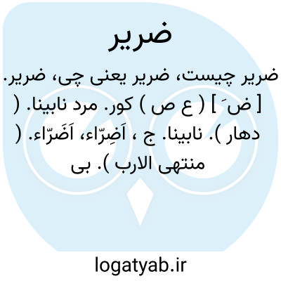 ضریر. [ ض َ ] ( ع ص ) کور. مرد نابینا. ( دهار ). نابینا. ج، اَضِرّاء، اَضَرّاء. ( منتهی الارب ). بی دیده. اَعمی. آنکه بینایی او رفته باشد. ( منتخب اللغات ). کفیف. مکفوف: