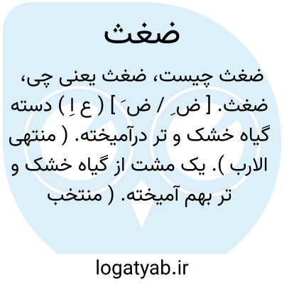 (ض ِ یا ضَ ) [ ع. ] ۱ - (اِ. ) دستة گیاه خشک و تر به هم آمیخته یا در هم پیچیده. ۲ - (ص. ) پیچیده، درهم. ۳ - کار آشفته. ج. اضغاث.