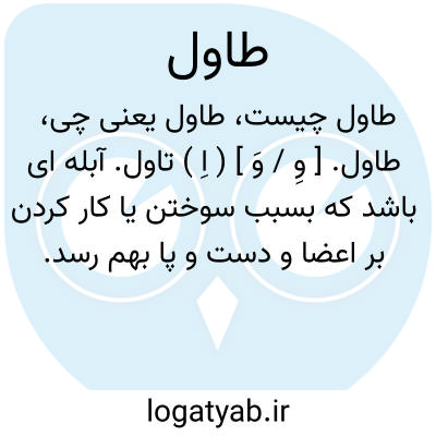 طاول. [ وِ / وَ ] ( اِ ) تاول. آبله ای باشد که بسبب سوختن یا کار کردن بر اعضا و دست و پا بهم رسد. برآمدگی پوست از سوختگی. آبله. برآمدگی جلد بکیفیتی که زیر آن آب جمع شده باشد. رجوع به تاول شود.
