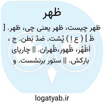ظهر. [ ظَ هَِ ] ( ع ص ) دردگن پُشت. مبتلی به پشت درد.رجل ٌ ظَهر؛ مردی که پشتش درد کند. ( مهذب الاسماء ).