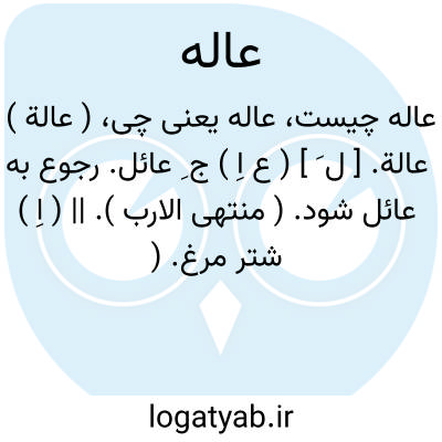 عالة. [ عال ل َ ] ( ع ص ) مؤنث عال. ( اقرب الموارد ). ابل عالة؛ شتران دوباره آب خورنده. و منه المثل عرض علی سوم عالة؛ أی لم یبالغ بیعی، که فروشنده کالا در وی مبالغه نکند. ( منتهی الارب ) ( آنندراج ) ( ناظم الاطباء ).