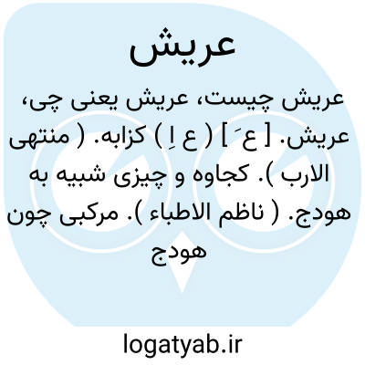 عریش. [ ع َ ] ( ع اِ ) کزابه. ( منتهی الارب ). کجاوه و چیزی شبیه به هودج. ( ناظم الاطباء ). مرکبی چون هودج که آن را ازبرای زنان سازند تا بر شترنشینند. ( از اقرب الموارد ). || وادیج رَز. ( منتهی الارب ). آنچه برای درخت رز ساخته شود تا شاخه های آن را بر وی قرار دهند. ( از اقرب الموارد ). نی بستی که بر آن شاخه های انگور افتاده می مانند. ( آنندراج ) ( غیاث اللغات ). چفته رز. چفت انگور: