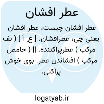 عطرافشان. [ ع ِ اَ ] ( نف مرکب ) عطرپراکننده. || ( حامص مرکب ) افشاندن عطر. بوی خوش پراکنی. عطرافشانی. عطر پراکندن. ( از آنندراج ). عطر افشاندن:
