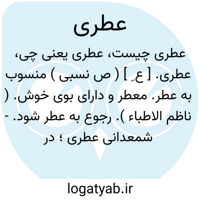 عطری. [ ع ِ ] ( ص نسبی ) منسوب به عطر. معطر و دارای بوی خوش. ( ناظم الاطباء ). رجوع به عطر شود.
