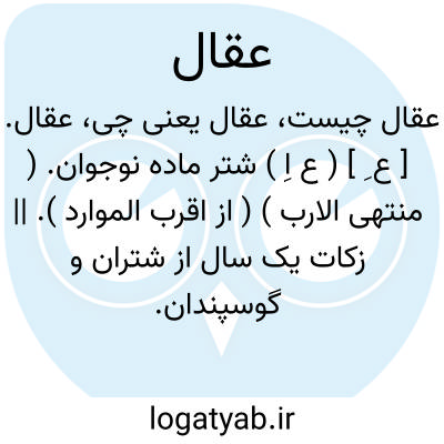اما چهار میخ است اینک زمین عقالش.خاقانی.سلطان شیطان غیرت را به عقال شریعت ببست. ( ترجمه تاریخ یمینی ص 376 ). بر حسب خبث فعال هر یک عقال نکال آن کشیدند. ( جهانگشای جوینی ). اکنون که عقل که عقال جنون جوانان است روی نمود. ( جهانگشای جوینی ).
