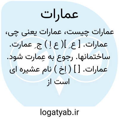 عمارات. [ ع ِ ]( ع اِ ) ج ِ عمارت. ساختمانها. رجوع به عِمارت شود.