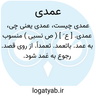 عمدی. [ ع َ ] ( ص نسبی ) منسوب به عمد. باتعمد. تعمداً. از روی قصد. رجوع به عَمد شود.