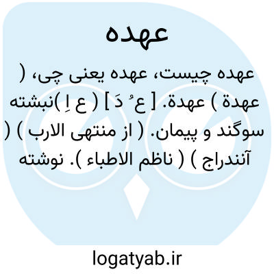 ( عهدة ) عهدة. [ ع ُ دَ ] ( ع اِ )نبشته سوگند و پیمان. ( از منتهی الارب ) ( آنندراج ) ( ناظم الاطباء ). نوشته حِلف. ( از اقرب الموارد ). عهدنامه. || نبشته خرید و فروخت و تاوان. ( منتهی الارب ) ( آنندراج ) ( ناظم الاطباء ). نوشته شراء. ( از اقرب الموارد ). || ( اِمص ) سستی خط. ( منتهی الارب ) ( آنندراج ) ( ناظم الاطباء ). ضعف در خط. ( از اقرب الموارد ). گویند: فی خطه عهدة؛ یعنی او بدخط است. ( از اقرب الموارد ). || سستی عقل. ( منتهی الارب ) ( آنندراج ) ( ناظم الاطباء ). ضعف در عقل و خرد. ( از اقرب الموارد ). گویند: فی عقله عهدة؛ یعنی در عقل او ضعفی است. ( از منتهی الارب ) ( از اقرب الموارد ). || بازگشت. ( منتهی الارب ) ( آنندراج ). بازگشت و رجعت. ( ناظم الاطباء ) ( از اقرب الموارد ): لی فی الامر عهدة؛ مرا در این کار بازگشتی است برای اصلاح آن،چه آن هنوز مستحکم نشده است و صاحب آن برای محکم ساختن آن بازمیگردد. وثیقه متبایعین نیز عهدة نامیده میشود زیرا هنگام بروز اشتباه و التباس بدان بازمیگردند. ( از اقرب الموارد ). || از نظر شرعی، ضمان ثمن است ازبرای مشتری هرگاه مدت بیع سر رسد و یادر آن عیبی یافت شود. ( از تعریفات جرجانی ) ( از اقرب الموارد ): قسط من و فرزندان من از ترکه واموال شوهرم از من بخر، و آن چندین جزو است و درک وعهده آن بر من بود. ( تاریخ قم ص 249 ). || عهدته علی فلان؛ یعنی اصلاح عیبی که در آن یافت شود بر اوست. ( از منتهی الارب ) ( از اقرب الموارد ) ( از ناظم الاطباء ). || المَلَسی ̍ لا عهدة له؛ مثلی است که در کراهت معایب زنند، و آن را در مورد کسی گویند که به وفا و امانت وی اعتماد نشاید. و «ملسی » این است که کسی مال سرقت شده ای را بفروشد و پس از دریافت بهای آن مخفی گردد، این لغت در اینجا بمعنی «ذوالملسی » به کار رفته است، یعنی آنکه بصورت ملسی چیزی را بفروشد عهده و ضمانی بر او نیست. رجوع به اقرب الموارد شود. || عهده. در فارسی بمعنی تعهد و ضمان و ذمه بکار رود: در عهده کسی؛ در گردن او. بر عهده کسی؛ بر ذمه او و بر گردن او. العهدة علی الراوی؛ تعهد و ضمان آن بر روایت کننده باشد: