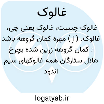 گهی زد به غالوک برمیغ و ماغ.فردوسی ( از جهانگیری ).گل مهره. کمان غلوله. و بجای لام با «ی » تازی هم گفته اند. خسرو دهلوی گفته: کمان گروهه زرین... و در جهانگیری و رشیدی و برهان غالوک نوشته اند که بمعنی غلوله یعنی غلوله کمان باشد. ظن غالب آن است که در اصل غالول بوده لام با کاف اشتباه یافته، غالول وغلوله یک معنی دارد. حکیم فردوسی گفته: